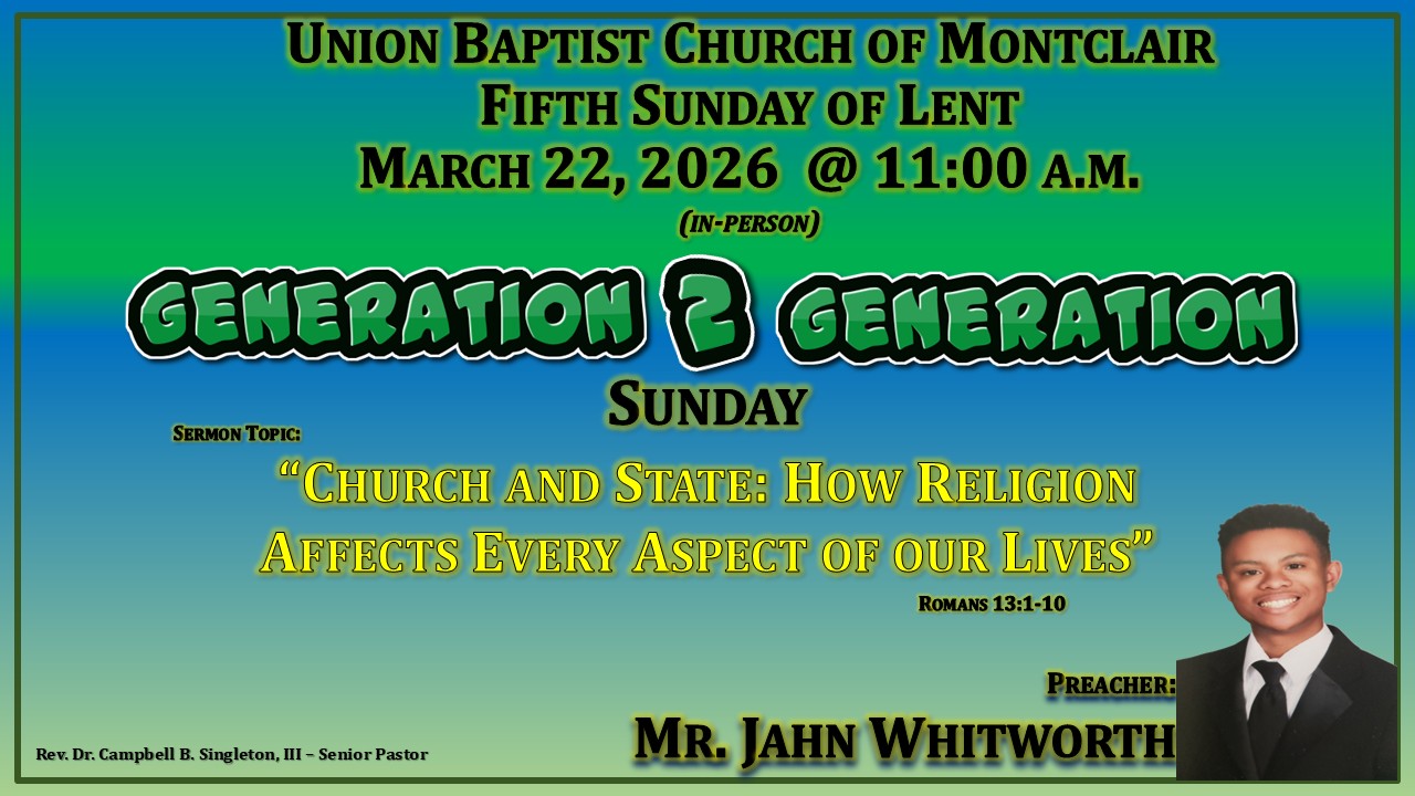 It is with exceeding joy that we welcome you to Union Baptist Church here in Montclair, New Jersey.